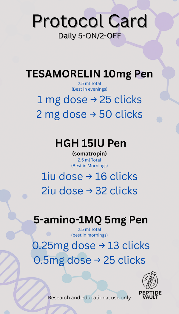 🔬 Tesamorelin is a synthetic growth hormone–releasing hormone (GHRH) analogue studied for its ability to stimulate endogenous growth hormone and IGF-1 production. It is of strong research interest in fat metabolism, body composition, and metabolic optimisation, particularly in studies focused on visceral fat and recovery pathways.